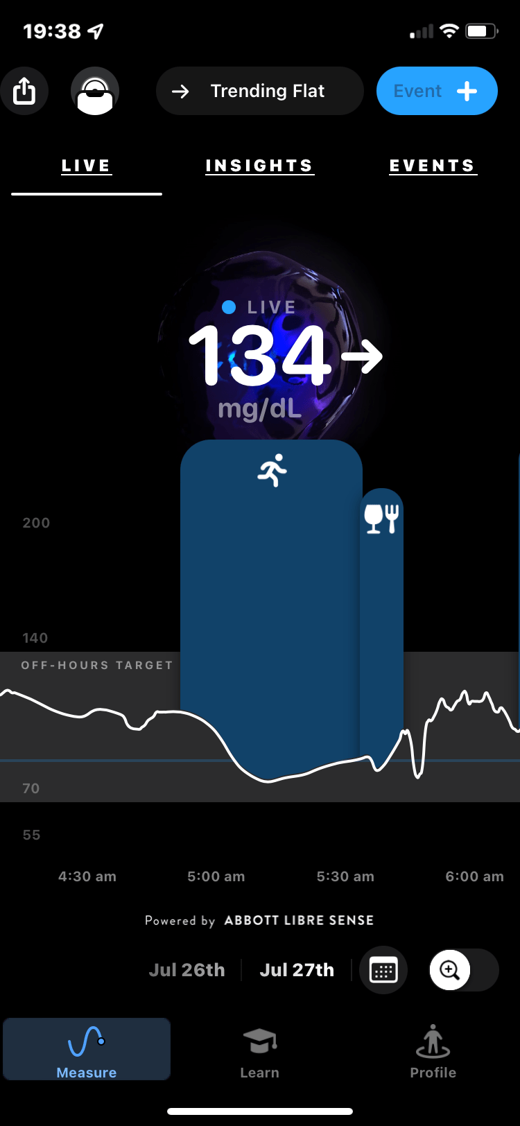 When I look at my glucose at night, I see it occasionally identifies some hypoglycemic events (low blood sugar, below zone). This isn’t good and I’m investigating why but it can be linked to the consumption of some fruits late in the evening like Mango which causes a crash and it might also be linked to alcohol consumption or some other hormonal reason.