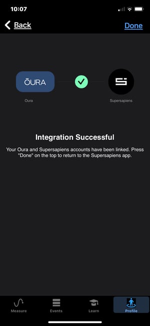 It’s a one-way link here with Oura data going directly to the Supersapiens app.