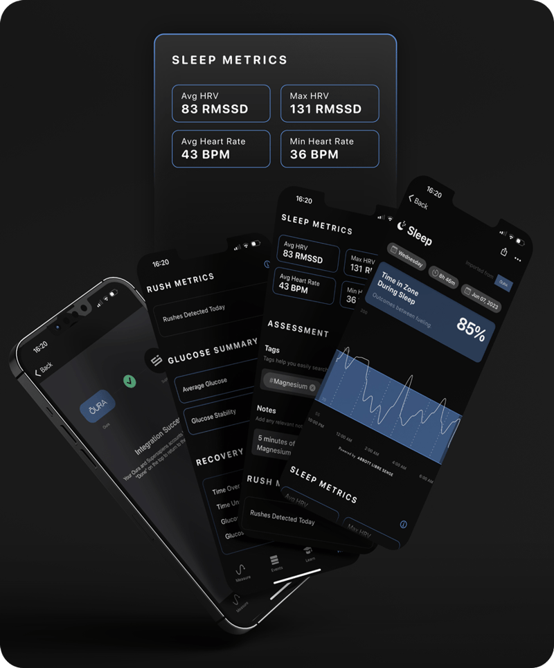 This may be a good warning sign for those prone to underfueling their training or may serve as a secondary marker with others such as resting heart rate and HRV to indicate recovery status. This relationship is one that is too early to speculate on, but very exciting and part of the driver for Supersapiens to integrate with Oura.