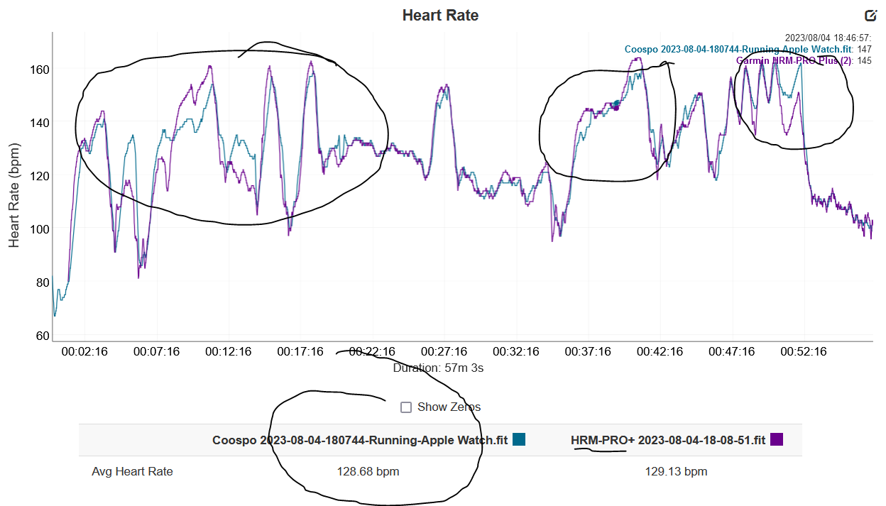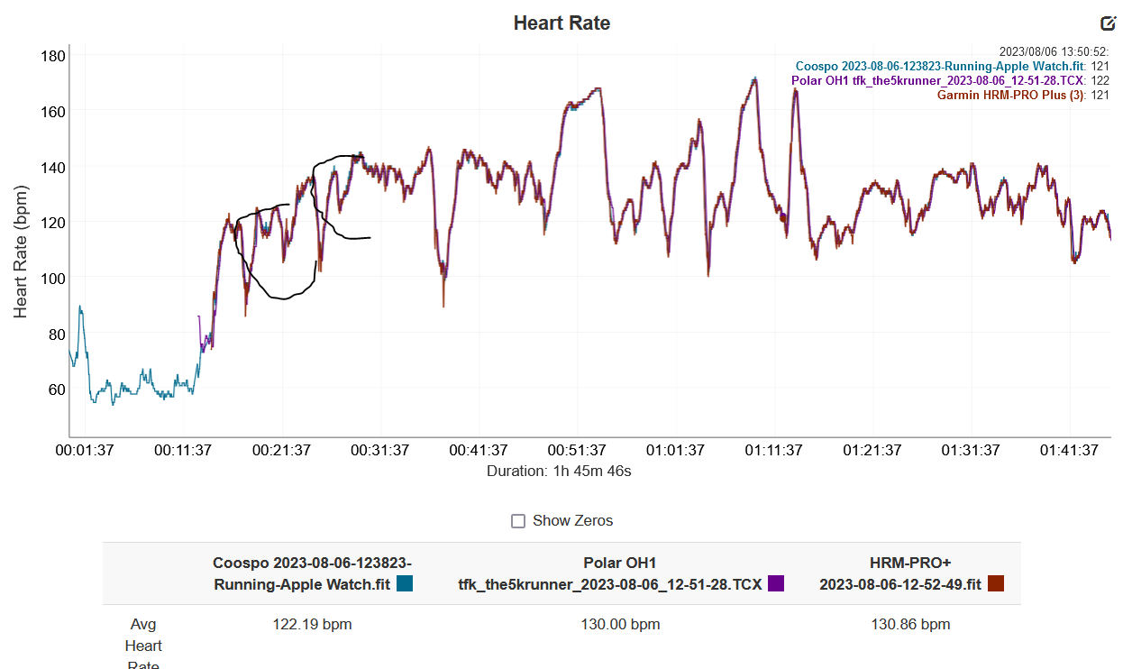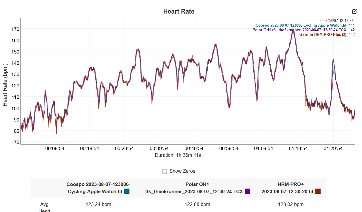 Here are four workouts spanning over five hours, consisting of three runs and one bike ride. During these sessions, the Coospo HW9 was recorded on an Apple Watch, alongside the Polar Verity Sense (using optical technology) and Garmin’s premium chest strap, the HRM-PRO Plus recording onto a Garmin Forerunner 965.