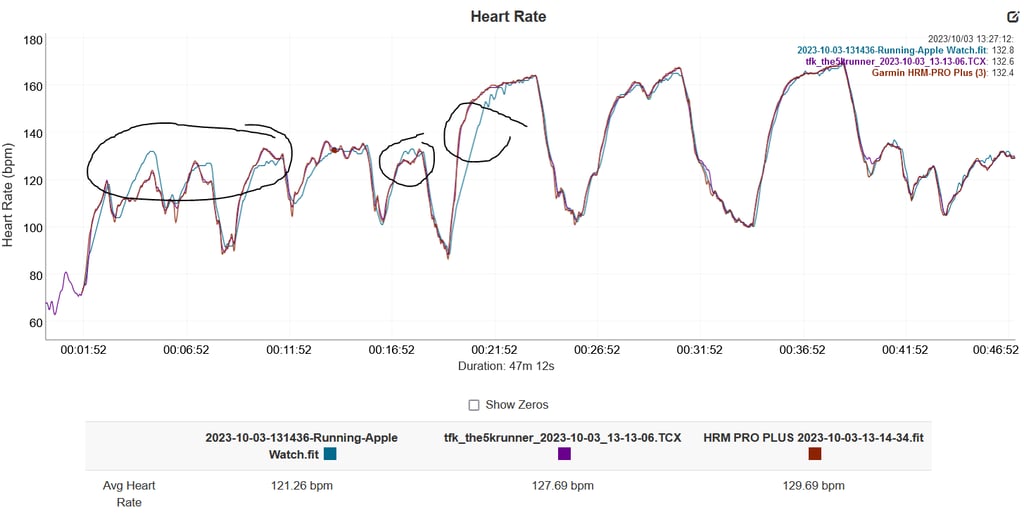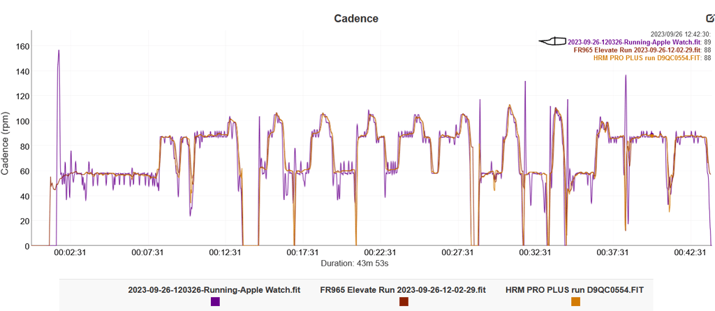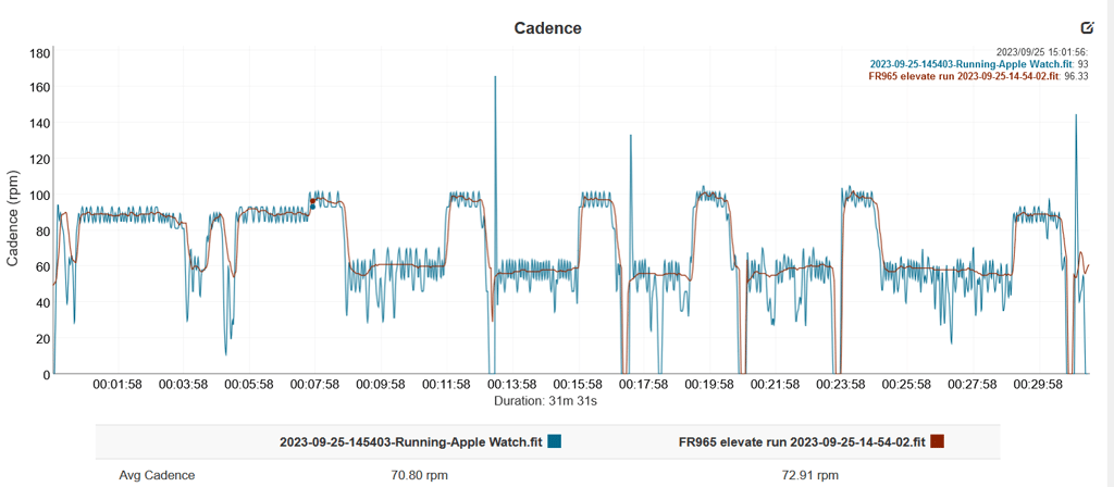 This tempo run shows excellent HR. The Garmin comparator was supposed to be Elevate 4 optical, so the label could be wrong. Either way, Apple is good.