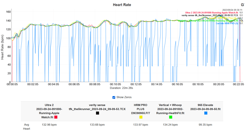 Here it’s the HRM-PRO PLUS which drops out its connection to my FR935. there are some very minor discrepancies if you look intently enough at the other tracks but this steady-state run posed no problems to Ultra 2.
