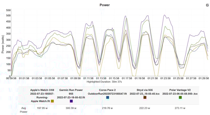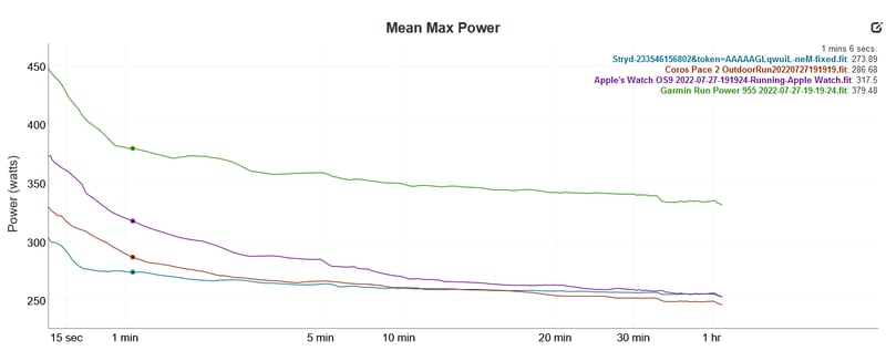 All the sports watch makers offer a ‘native’ solution, meaning their proprietary power is incorporated throughout their platforms with features like power-based running plans. However, Coros, Suunto, and Polar also support Stryd as a fully integrated alternative to their proprietary power. Neither Apple nor Garmin natively allows Stryd power as an alternative, but both allow Stryd’s excellent app to work with their watches. If you use Stryd on any watch, its data is comparable, i.e., you can switch watch brands and use your Stryd history – you cannot switch between watch brands and their individual flavours of power.