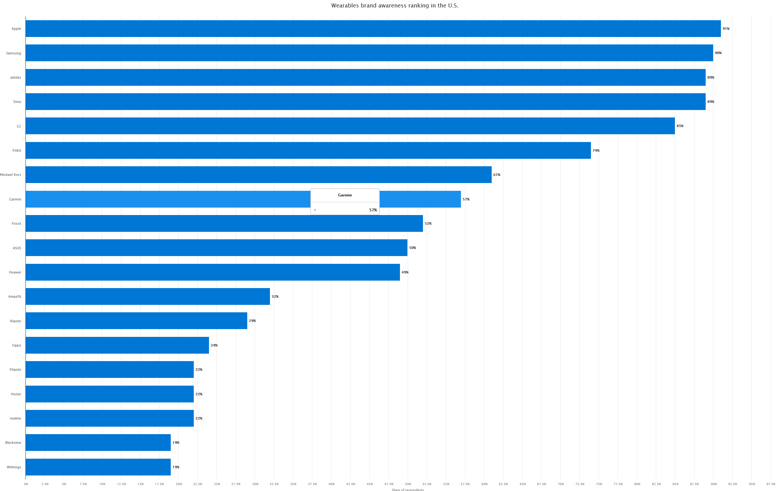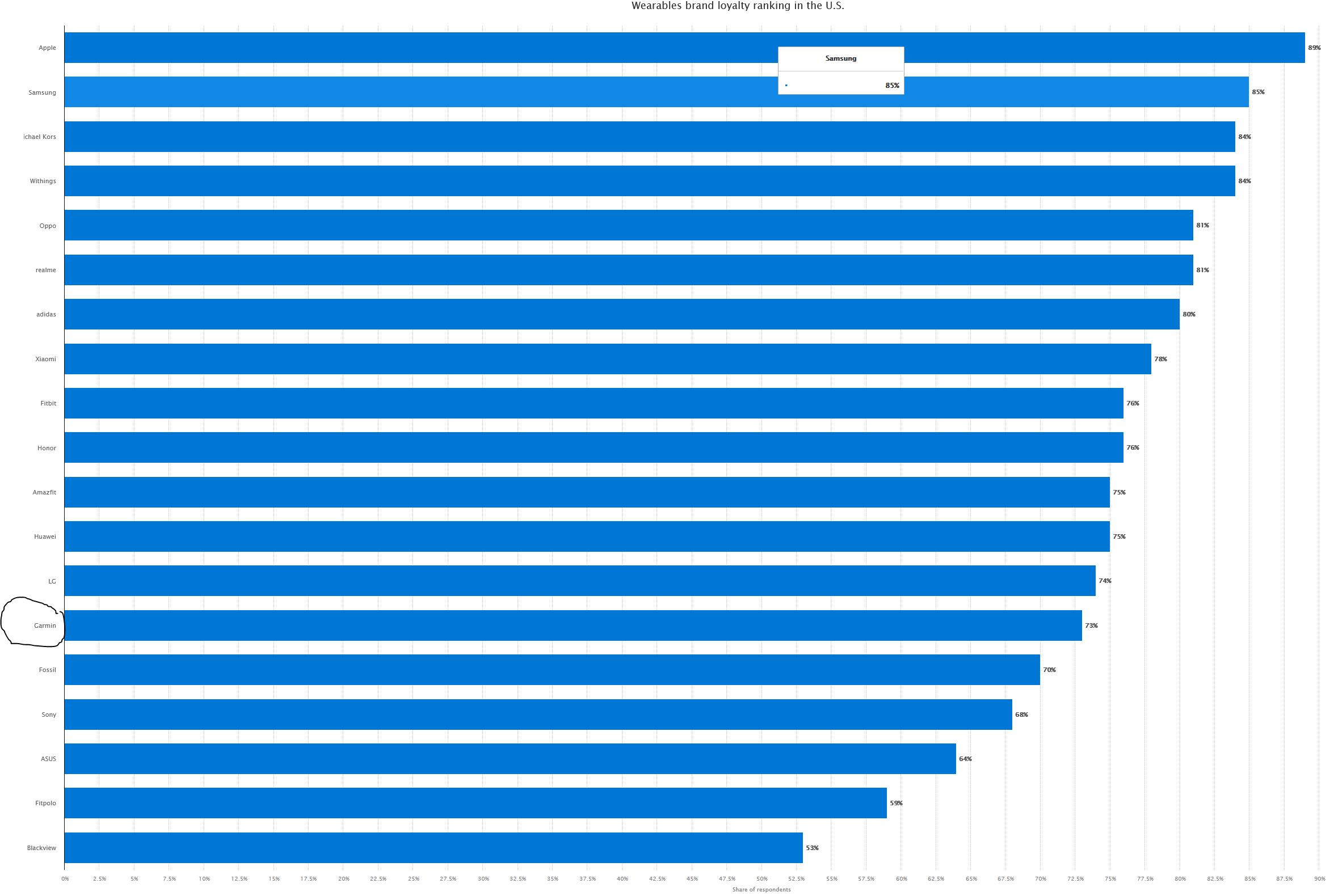 Pretty dumb to compare a sports accesories company to apple samsung and oppo. Go ask enduro sports athletes the same question and these brands wont show up.