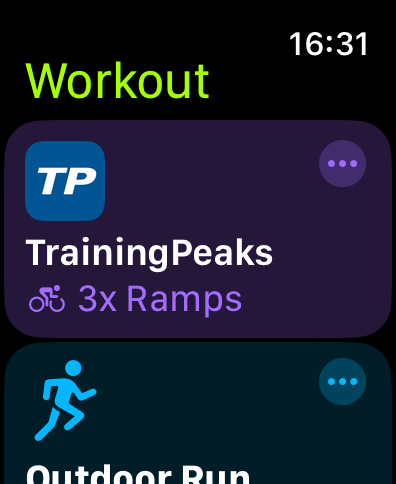 It’s only run/ride workouts for now. Just go to the standard Apple Workout app and you will be prompted to get going. It just so happens that today I have two cycling workouts planned.