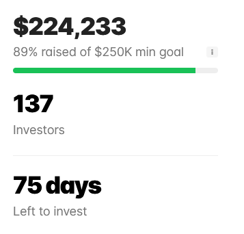 As of 20 Dec 2023, the company had raised 89% of its target. However, I imagine its real target is MUCH higher as $250k is only enough cash to find a few months of current usage (the burn rate appears to be about $100,000 pcm)