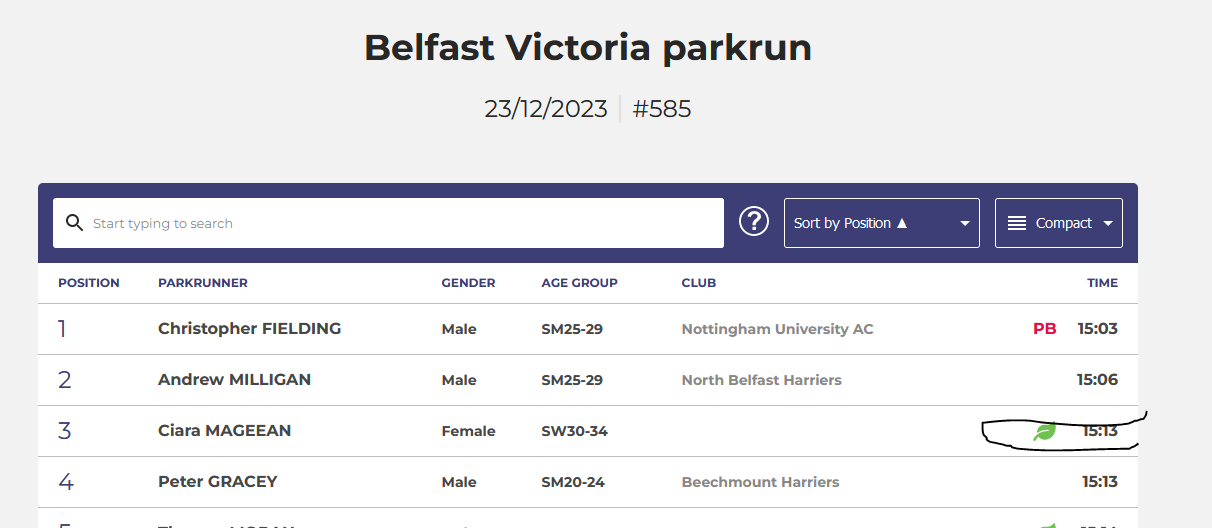 Ciara has been a high-level runner for over 10 years and currently competes in the Wanda Diamond League. Her time at Belfast Victoria also represents an all-time 5k PB for her…even beating her previous best track time of 15:24 (2023).