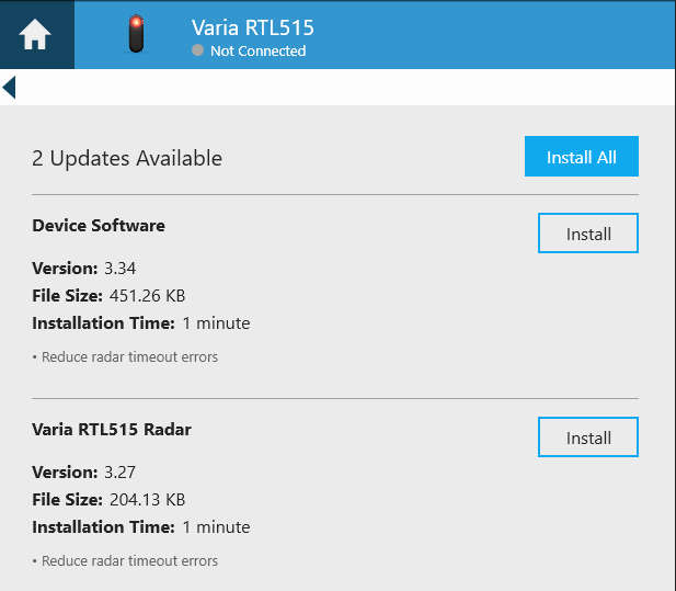 Unrelated to updates but on the RTL515, I notice mine will not show on the Varia app as having battery percentage higher than 50% any more no matter how long I charge it. I know the battery is degraded but I wouldn’t think that would be shown in the percentage in the Varia iOS app? Seems like it would still show as fully charged even if it didn’t last as long. Can anyone confirm this is normal behavior?