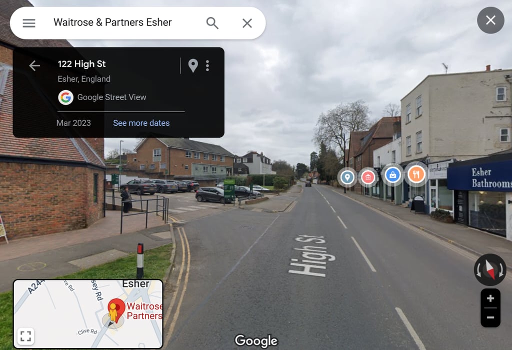 This is one location I’m talking about – Waitrose in Esher. Don’t get excited, I’m not super-posh. I just cycle past it rather than shop in it. Though I did buy a nice Sancerre there during lockdown, but that’s another story.