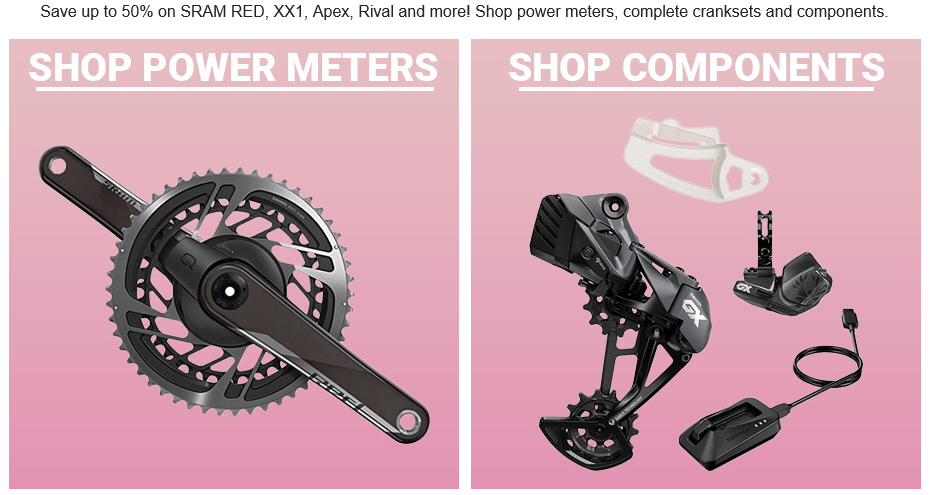 West Coast-based Power Meter City hosts an up to 50% sale of SRAM stuff. Mostly SRAM Red and that includes chains, derailleurs, power meters, brake levers, and cassettes