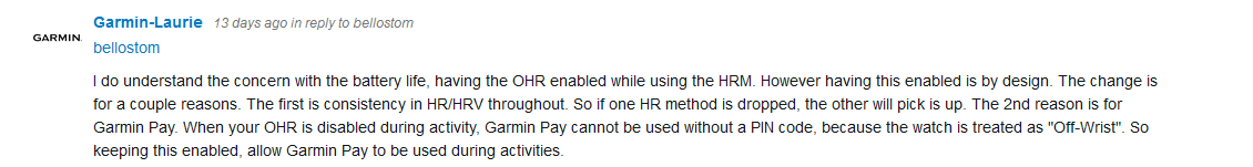 There is a chance that Garmin might release another new HRM in the next couple of months. This change might have some implications for that or for the newly announced automation for recovery heart rate calculation.