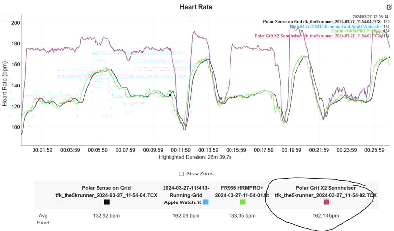 your results seem a bit better than mine. At least with mine the error is obvious. With the example you show someone else (without a comparison HRM) would be none the wiser.