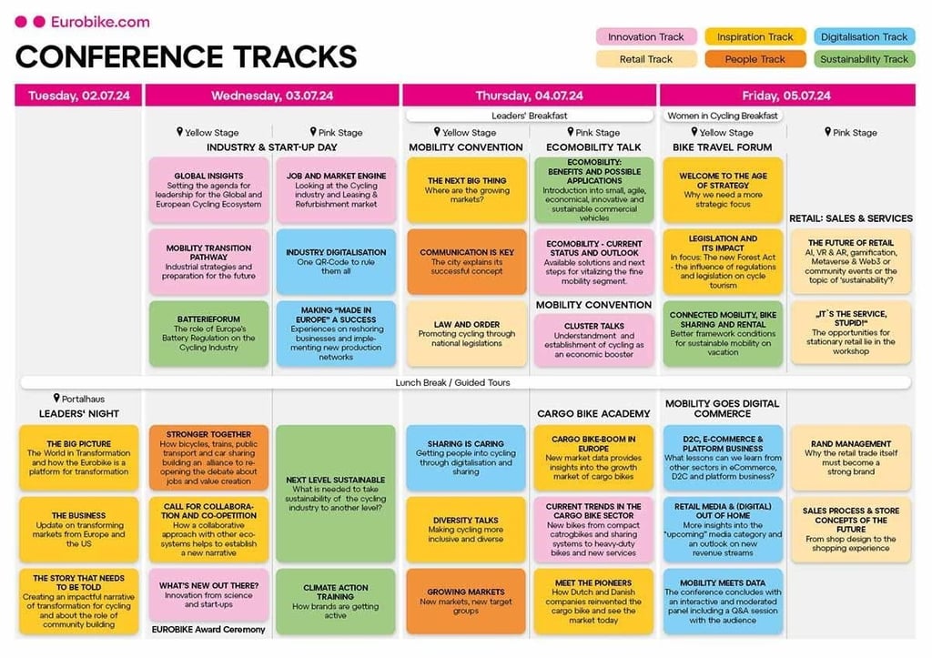 - Industry and Start-Up Day – covers the full spectrum of the cycling ecosystem, from manufacturing to retail, from rental to bike sharing.