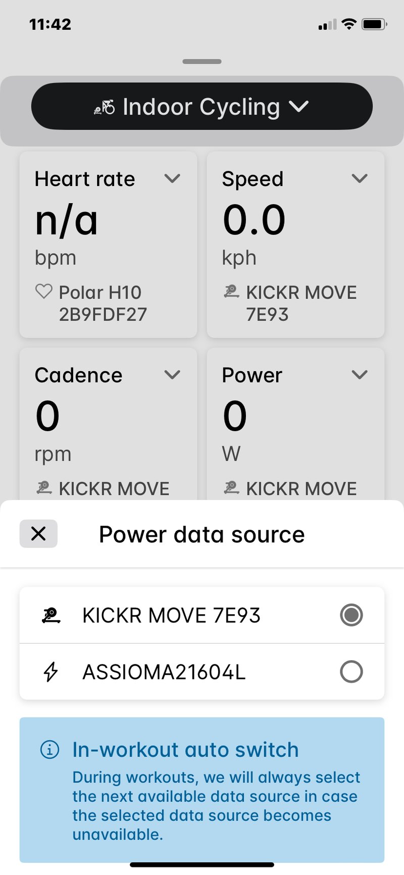 Another option is to use your regular power meter as the power source and let KICKR MOVE do the resistance control. This can be a good idea as it means your indoor and outdoor power readings will be consistent; however, you might find a degree of unresponsiveness (test it with your power meter).