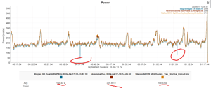 Some selected rides don’t paint a perfect picture for Wahoo. However, a big part of that is because of some of the issues I had with my Stages cranks that kept dropping cadence (cadence times torque = watts…no cadence…no watts).