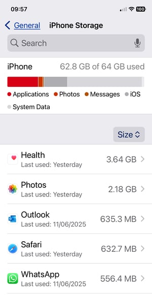 However, a little later, I received the dreaded ‘device full’ warning. It appears that my iCloud photos are filling up any available space. Each time I delete another app, the space is quickly filled again. I’m not entirely sure what is filling it up.