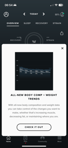In the Whoop app go to Home> Overview> Customise and add Body Fat Percentage or any other metric. Your Garmin/Withings data should now update quickly on your Whoop app after every reading.