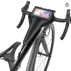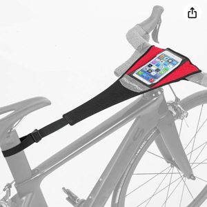 It’s a simple design with one piece of velcro fastening to the seat post and two others fastening to the handlebars on either side of the stem. I got the one shown in the 5th image near the start of the year and it’s still going strong. It’s a bit gunky now with numerous sessions’ worth of sweat and salt, the only downside that bothers me is getting an iPhone into the protective plastic casing. The casing perfectly protects the phone but it’s a tight fit, which I suppose you need so that the touchscreen still works.