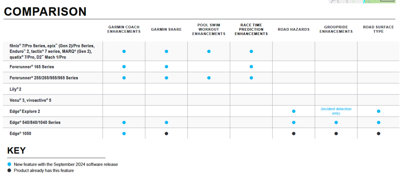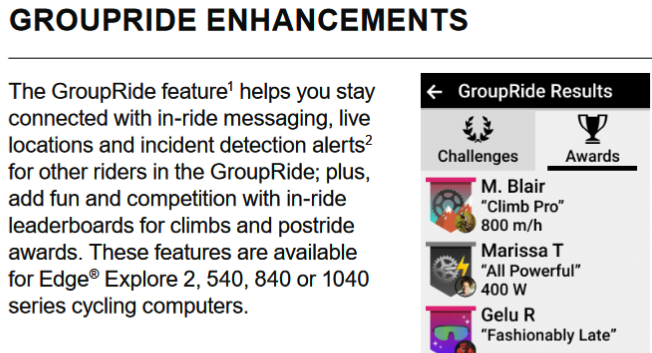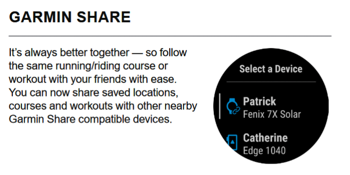 There are some cool updates to group training if you and your friends all use Garmins. At the start of a ride, you can share workouts, locations and courses directly from one Garmin to another and when riding there are new enhancements to Group messaging and group leaderboards. (Reported here in May 2024)