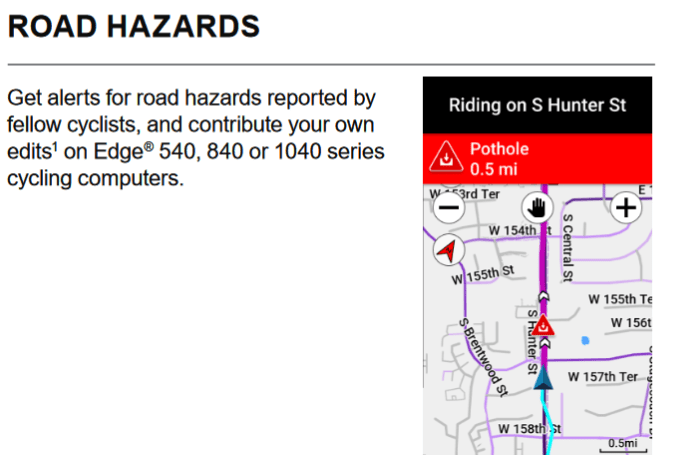 Your daily training might also benefit from some of the new Garmin cycling features such as crowd-sourced Road Hazards, and notifications of impending road surface changes when you follow a route.