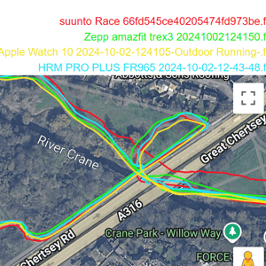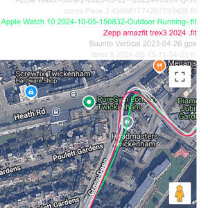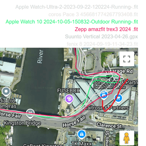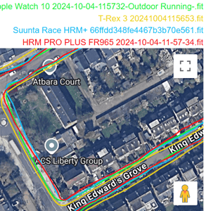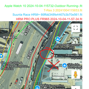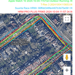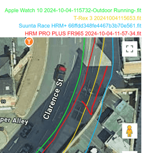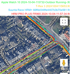 GPS accuracy was good by 2024 standards but not as good as Fenix 8. Here are the results from 4 tests in various conditions of GPS difficulty.