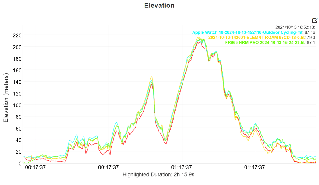 The running power data was significantly higher than every other source I compared it to, and the running cadence was recorded as double, measuring footfalls instead. Elevation tracking was also intermittent and seemed slightly too high.