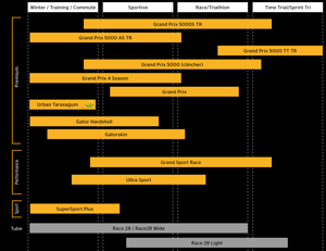 Most keen cyclists I know opt for the existing Continental GP5000 tyres, which have low rolling resistance (RR), weight and decent grip. There are various flavours, like the lighter TT version that lowers RR and a heavier TLR version that replaces the weight and risk of an inner tube with the weight and risk of sealant (hmmm). I like and use Pirelli as well.