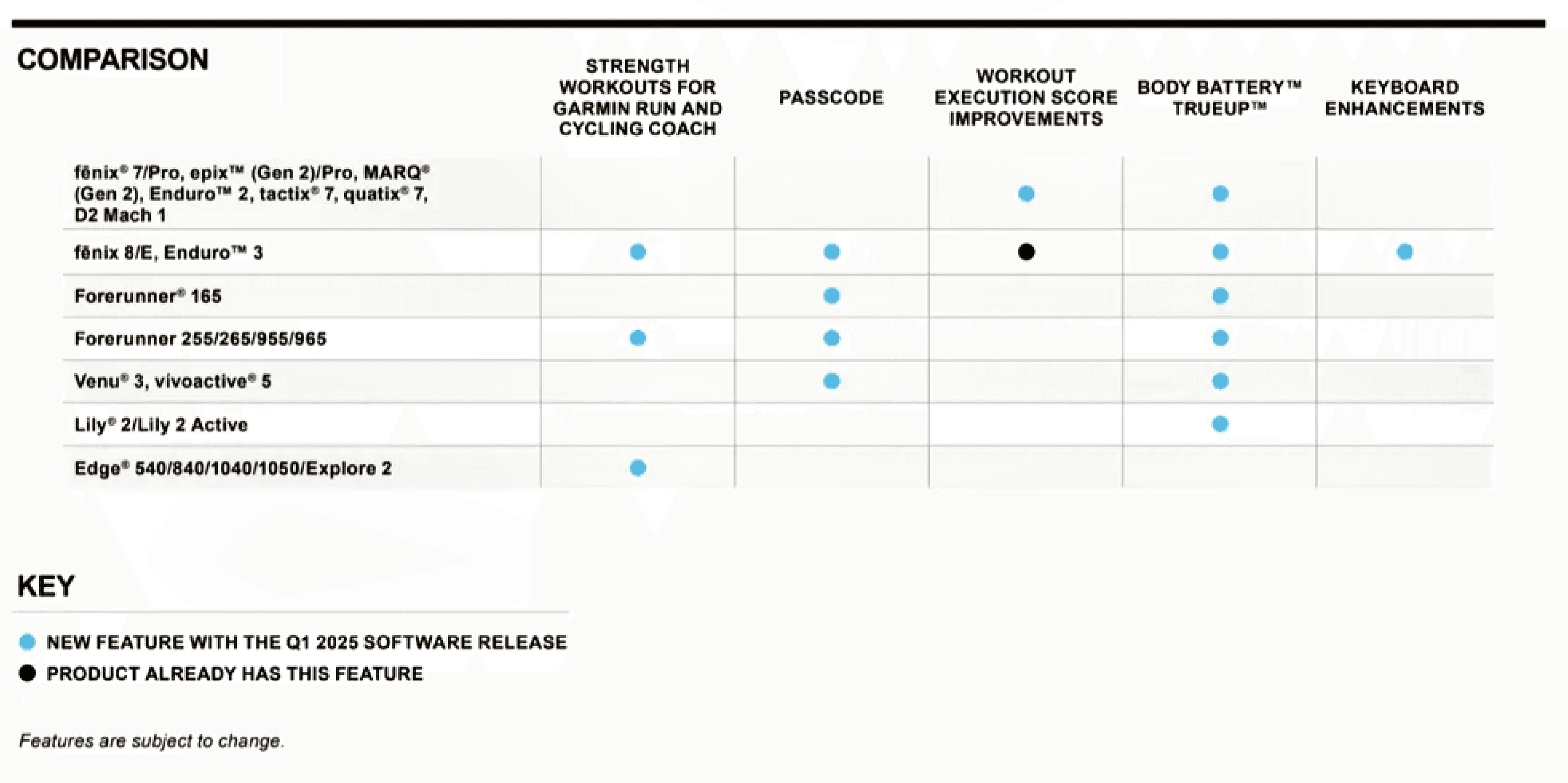 Strange omissions are the lack of updates for the Fenix 7, 7 Pro, Epix Gen 2 and Epix Gen 2 Pro families. We can only assume they will be added in Q2.