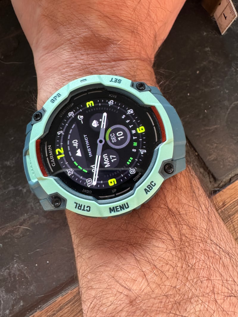 You might get away with the aesthetics of the 50mm model on a medium-sized wrist. The watch, IMHO, still looks a bit big but Ok. Perhaps the light green colouration of the bezel focuses the attention on that rather than where the lugs are (where the strap attaches) creating a slight illusion of smaller size. Perhaps also the light-feel of the Instinct 3 plays into a perception of lightness and smallness.