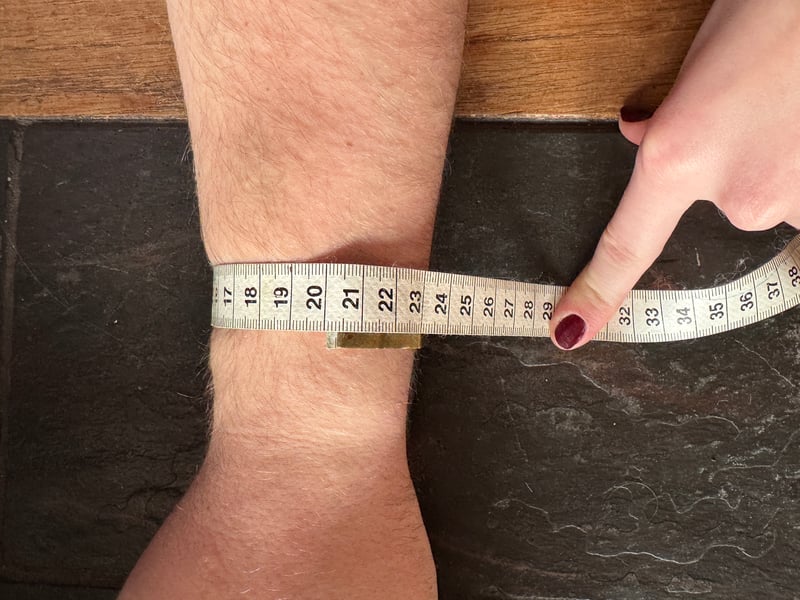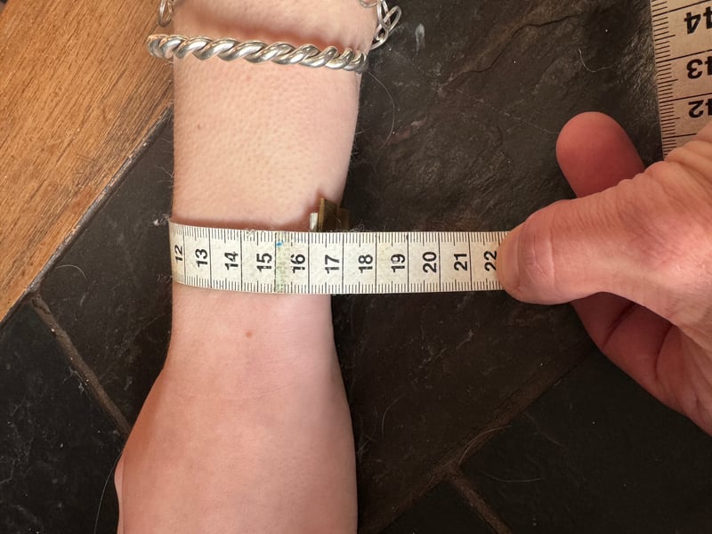 The medium 18cm male wrist is 7″. I would say the person’s wrist is slightly thinner than average for a male, and the watch looks a tad too big but maybe OK.