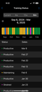 Providing that your zones and workout data are correct, Garmin’s Training Status is a good overall indicator of progression across recent weeks or months.