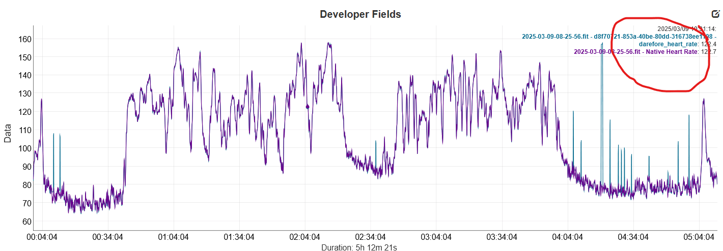 Finally, look at the native heart rate recorded for the Garmin HRM-PRO+ vs HR according to Darefore, shown in dcrainmaker’s Analyzer tool. Apart from some incorrect spikes, perhaps caused by wearing two chest straps, the manufacturer’s claim of 99% accuracy might be good.
