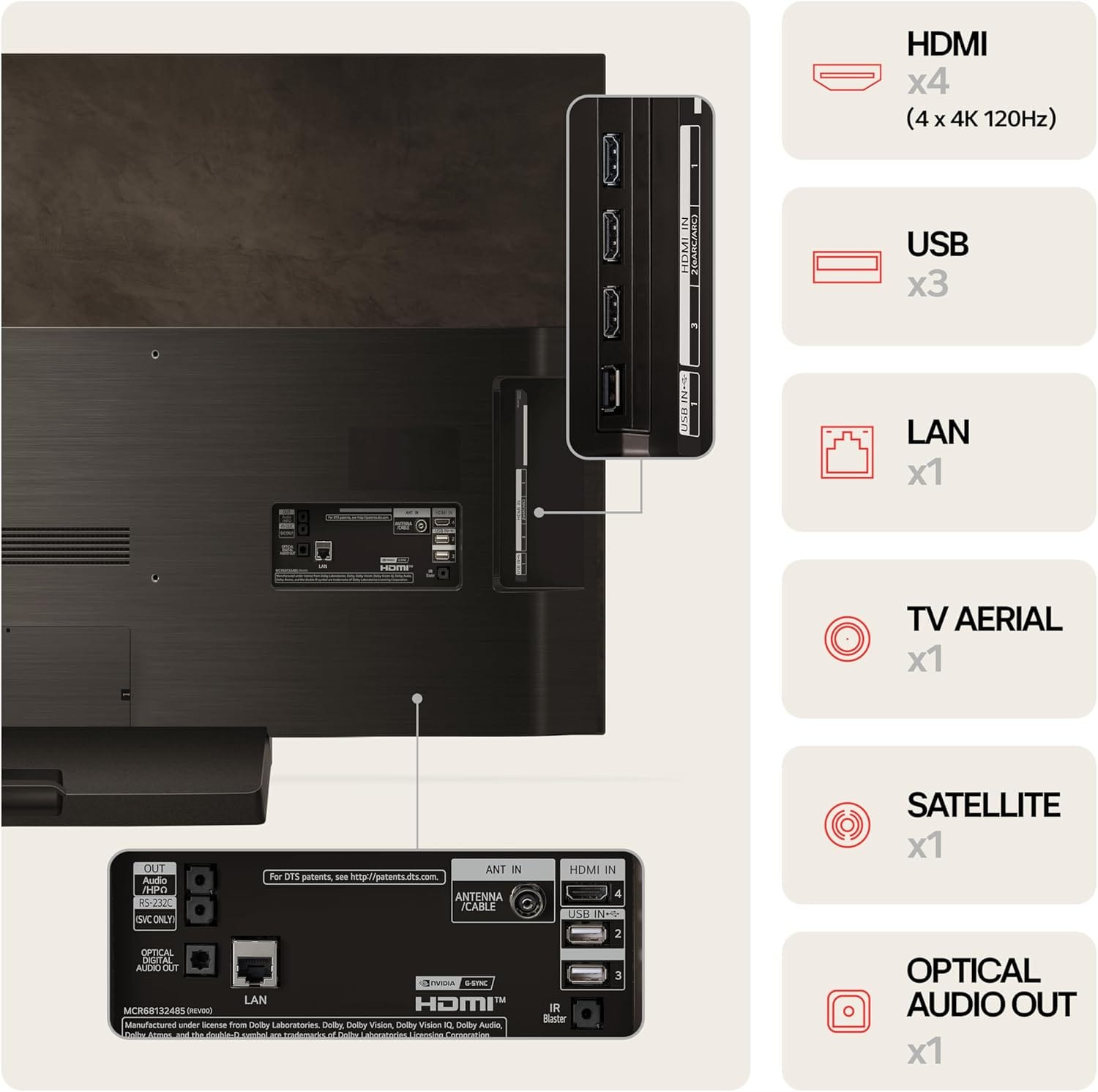 - HDMI Ports: 4 x HDMI 2.1 (supports 4K at 120Hz, Dolby Vision, and variable refresh rate for gaming)