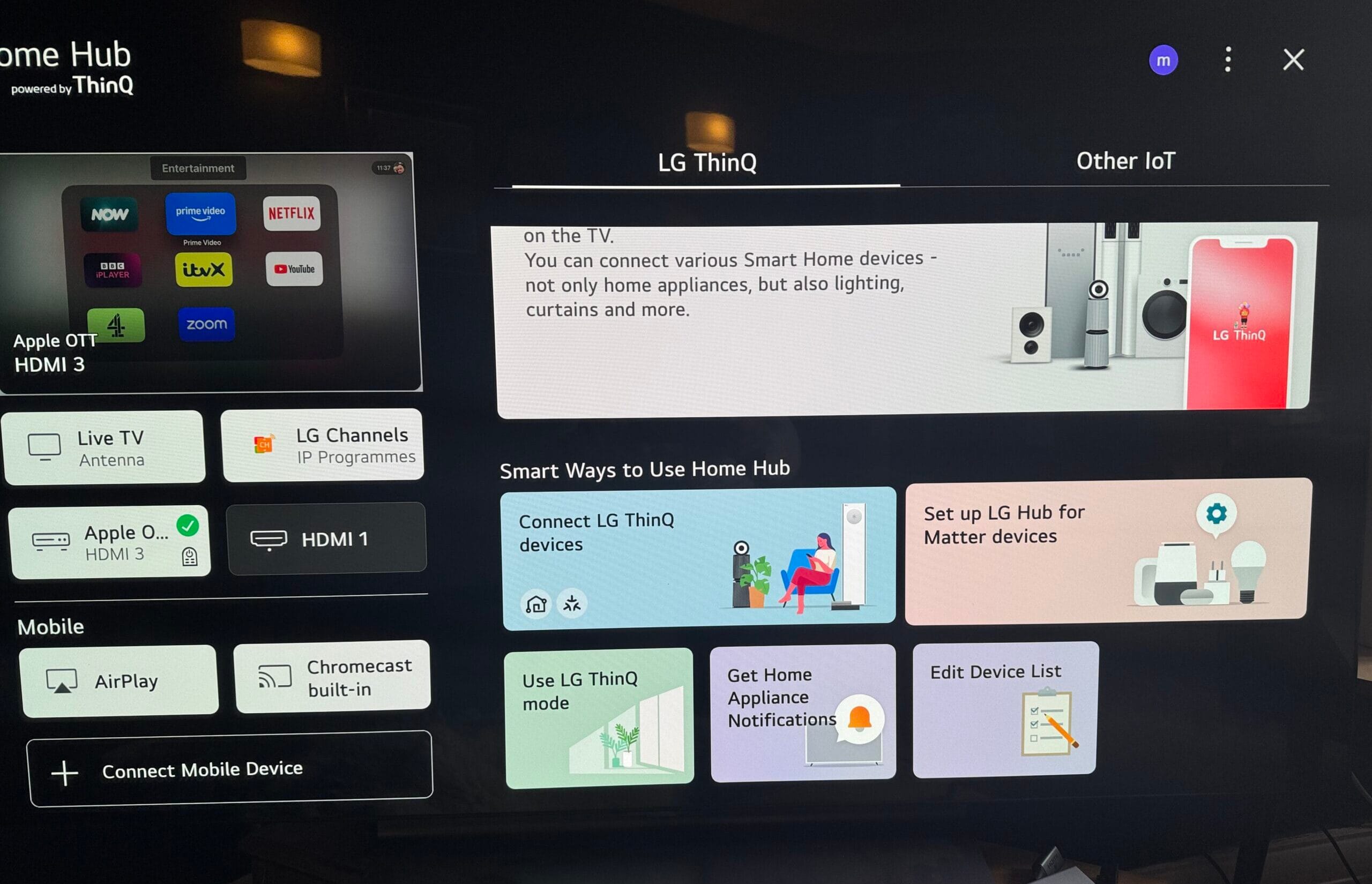 The remote and screen are pretty intuitive to figure out how to use. I come from Apple TV 4K, which has a more streamlined interface, is better designed, and is a doddle to set up within 30 seconds. I must have spent over 3 hours fiddling with the LG configuration. Everything with LG’s webOS takes extra clicks and can’t be configured or modified how you’d like. I’m unhappy with the usability and screen appearance of the various menus.