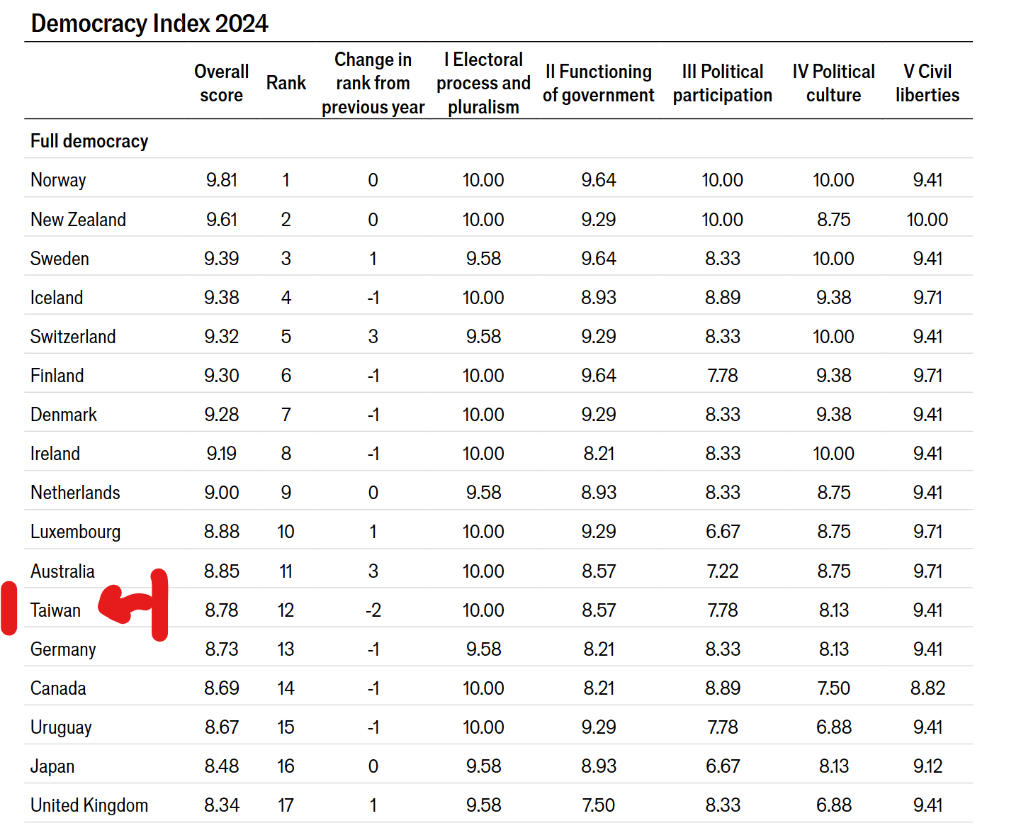 The Taiwanese think otherwise and live in one of the most successful and democratic countries. It’s a more democratic country than you and I live in (the USA ranks 28th as a ‘flawed democracy’ and technically is a republic or democratic republic).