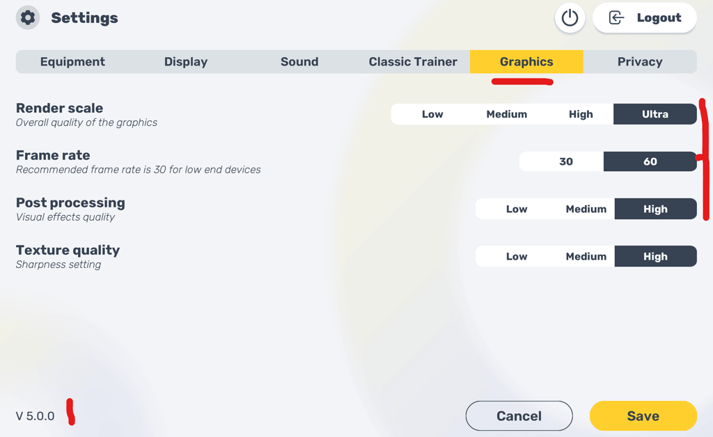 - Frame Rate Selection: Users can now choose between 30 FPS and 60 FPS based on their device capability and performance preferences. 60fps is only available on systems that myWhoosh deems to be able to support it.