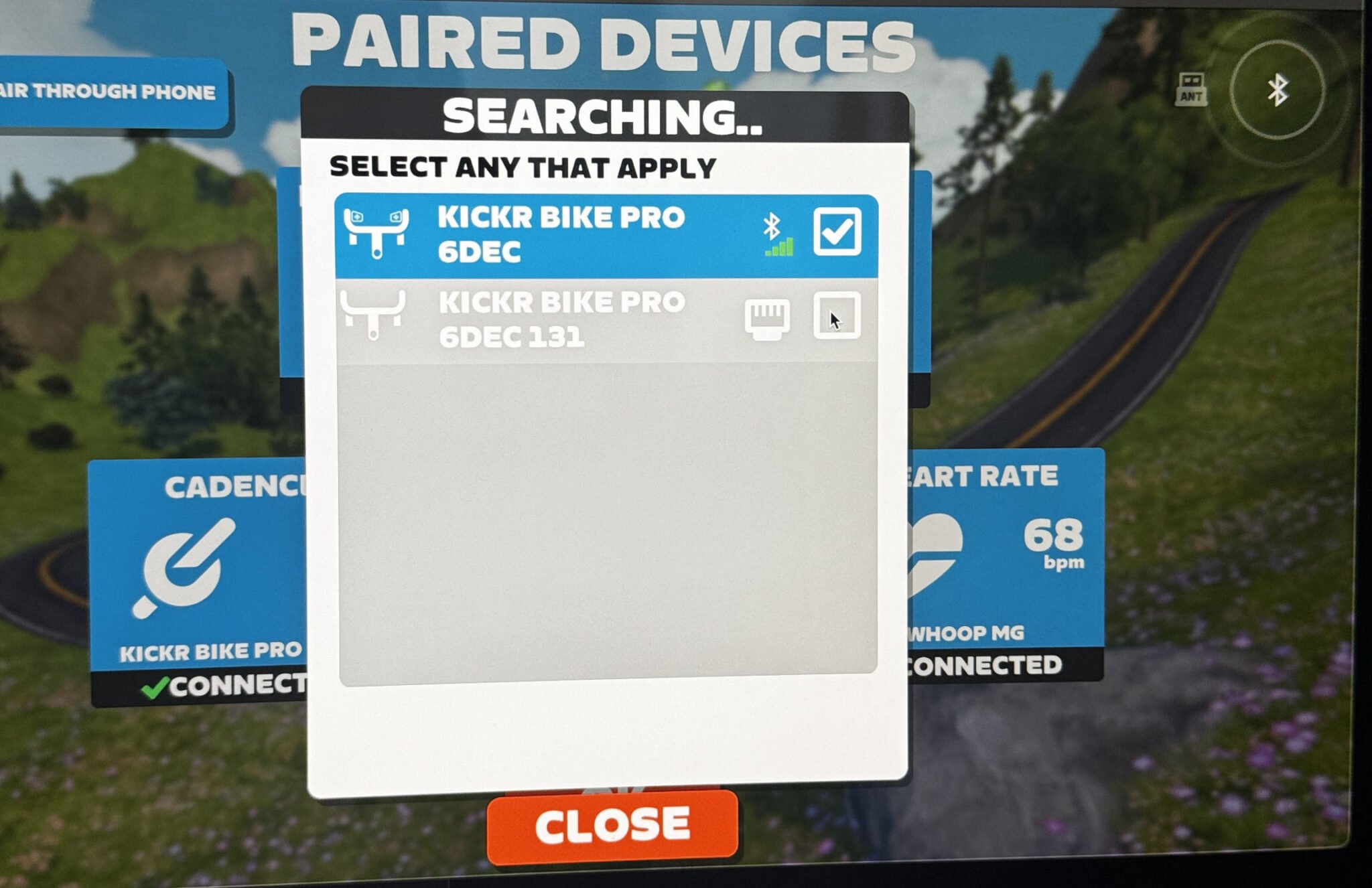 When you come to pair to Zwift, you’ll see something like the following screen, and you will generally choose the top Bluetooth option, whereas I’d choose the bottom one (LAN).