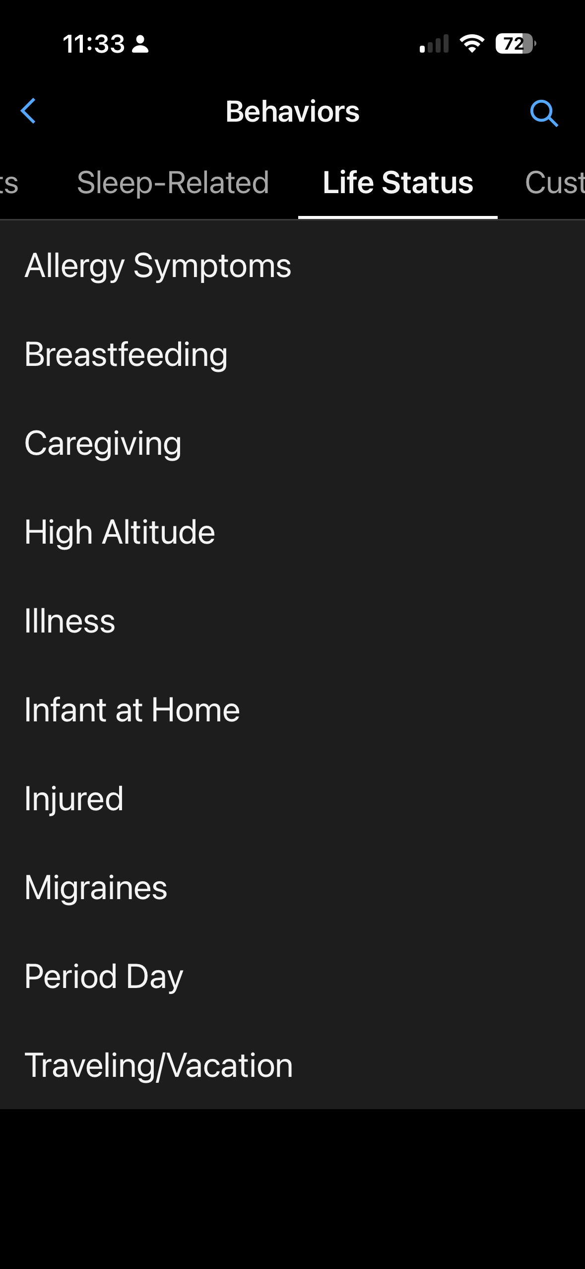 Lifestyle Logging is a daily journaling feature that allows you to log behavioural events that might impact your health.