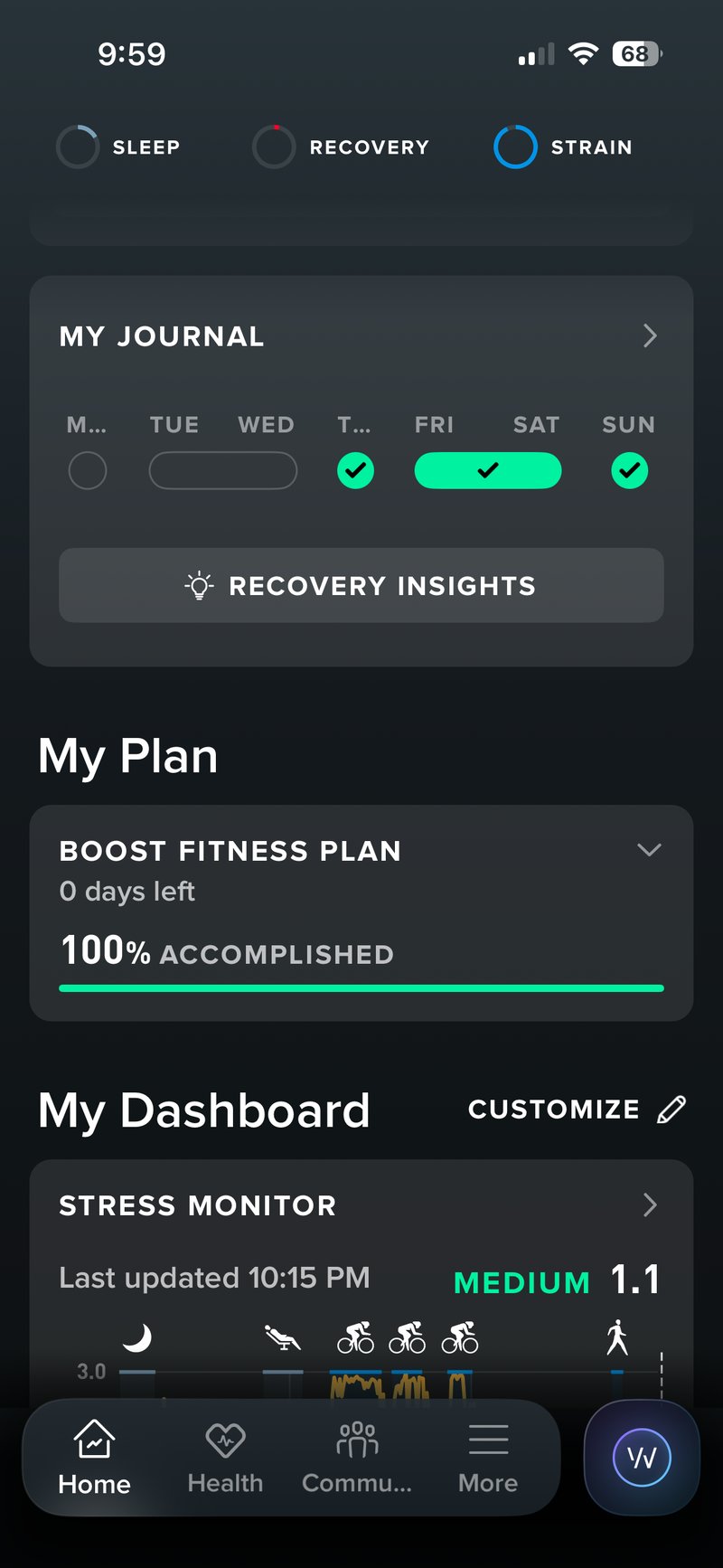 - Blood Pressure Trend: Whoop’s blood pressure algorithm is facing a strike from the FDA. It requires a cuff calibration and only gives broad trend information.