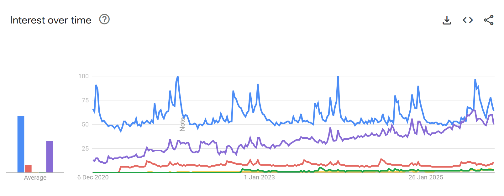 The clear, obvious, and surprising trend shown above is that public search interest for “Garmin” now matches, and at times even (just!) surpasses, that for “Apple Watch.” While my specific “Garmin” search couldn’t be narrowed to its watches alone, the unmistakable direction of travel indicates a significant shift in consumer curiosity and intent.
