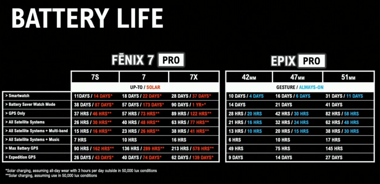 Here we have the official battery lives of the upcoming PRO models of Garmin Fenix 7…