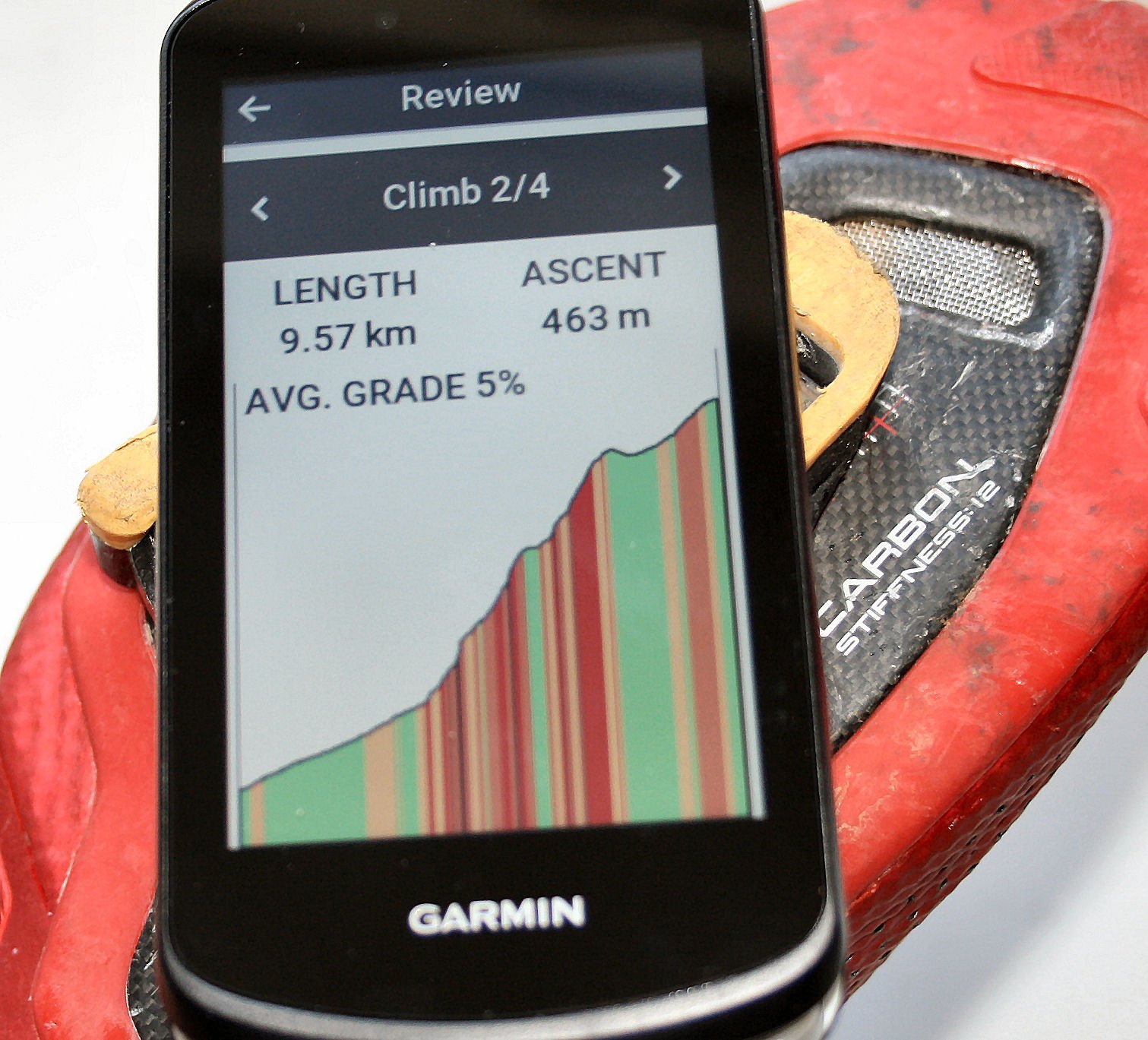 ClimbPro gives a reliable overall picture rather than pinpoint accuracy at any single moment. The total ascent and climb length figures are only as accurate as the elevation data the device reads. Small errors at each elevation point add up across a long climb, so the total ascent figure should be treated as approximate rather than definitive. The gradient shown is the average for the current section of the climb, not the exact current grade; on climbs with varied pitches, the two can differ noticeably.