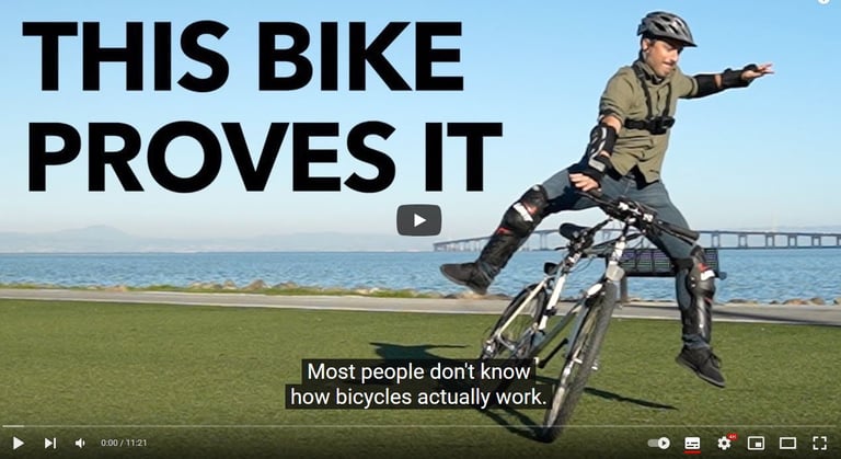 today he's turned to the more mundane subject of steering a bike.