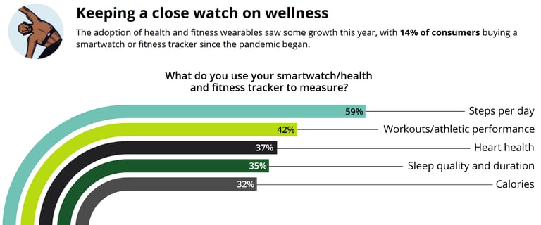 In Feb/Mar 2021, "42% of smartwatches were used for workouts & athletic performance",